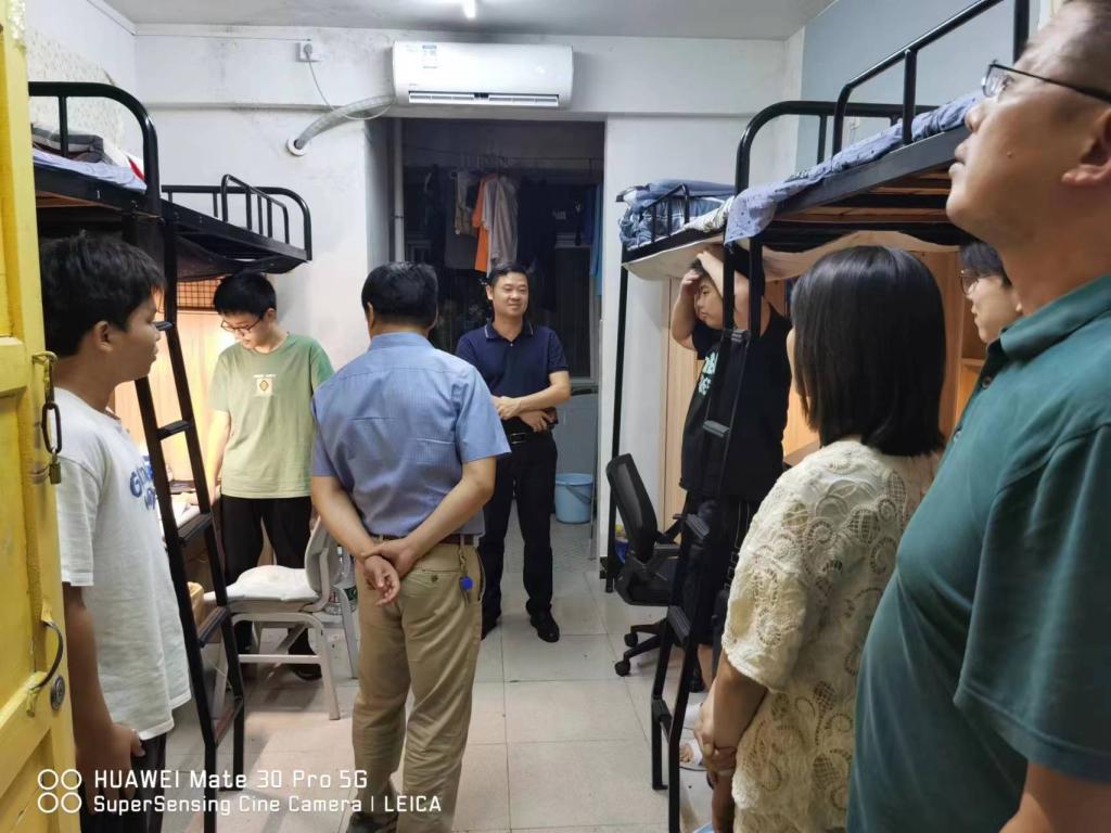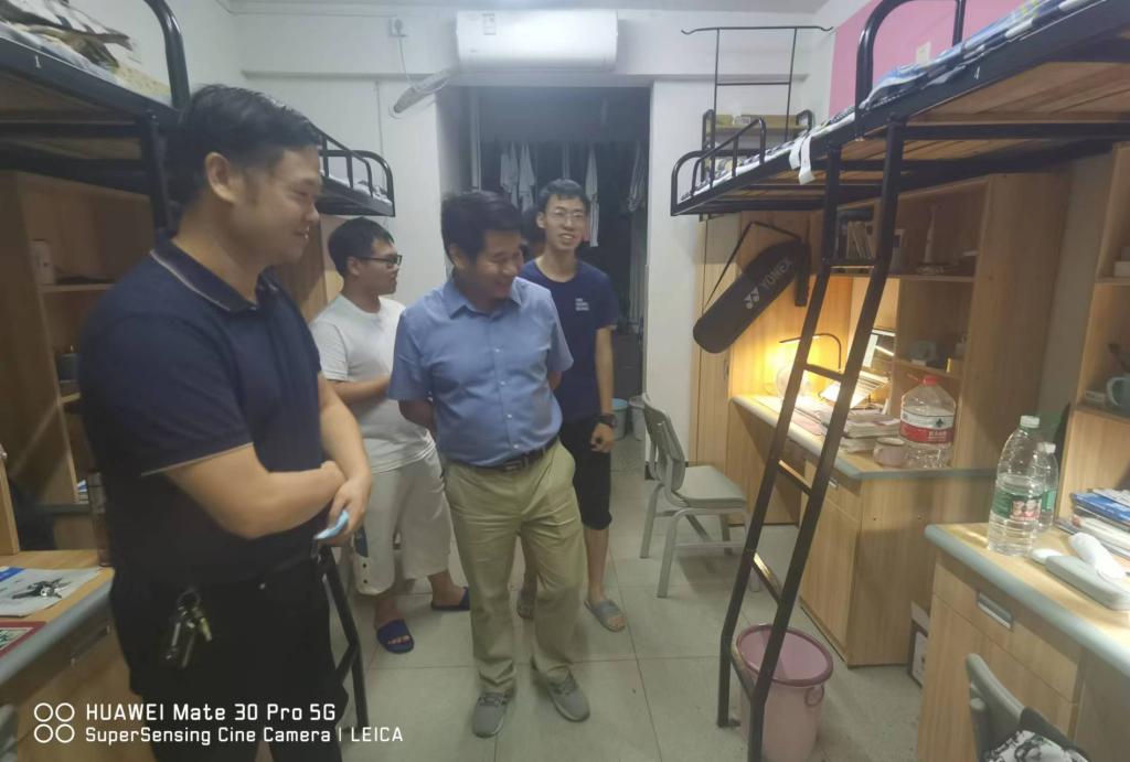 9月21日晚,副校长周发明在计算机学院党委书记刘立勇、副院长何向阳、院党委副书记陈奕和全体辅导员的陪同下,来到田径场看望军训学生。对军训学生的晚训表现给予了高度评价,慰问了现场因病无法参加晚训的后勤军训见习学生。周发明一行还查看了我院学生寝室,了解同学们的生活和学习情况,重点询问了同学们英语四六级考试情况以及专业课程作业情况。周发明对我院寝室内务卫生及寝室浓厚的学习氛围给予了肯定,勉励同学们要继续保持良好生活习惯,勤奋学习,争做时代新人。